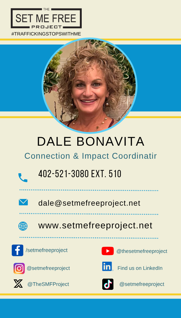 Outside of work, you’ll find her hiking with her dogs, skiing, gardening, playing pickleball, or doing anything that gets her moving—because the grass never grows under her feet. She’s incredibly excited and honored to be part of The Set Me Free Project’s mission.