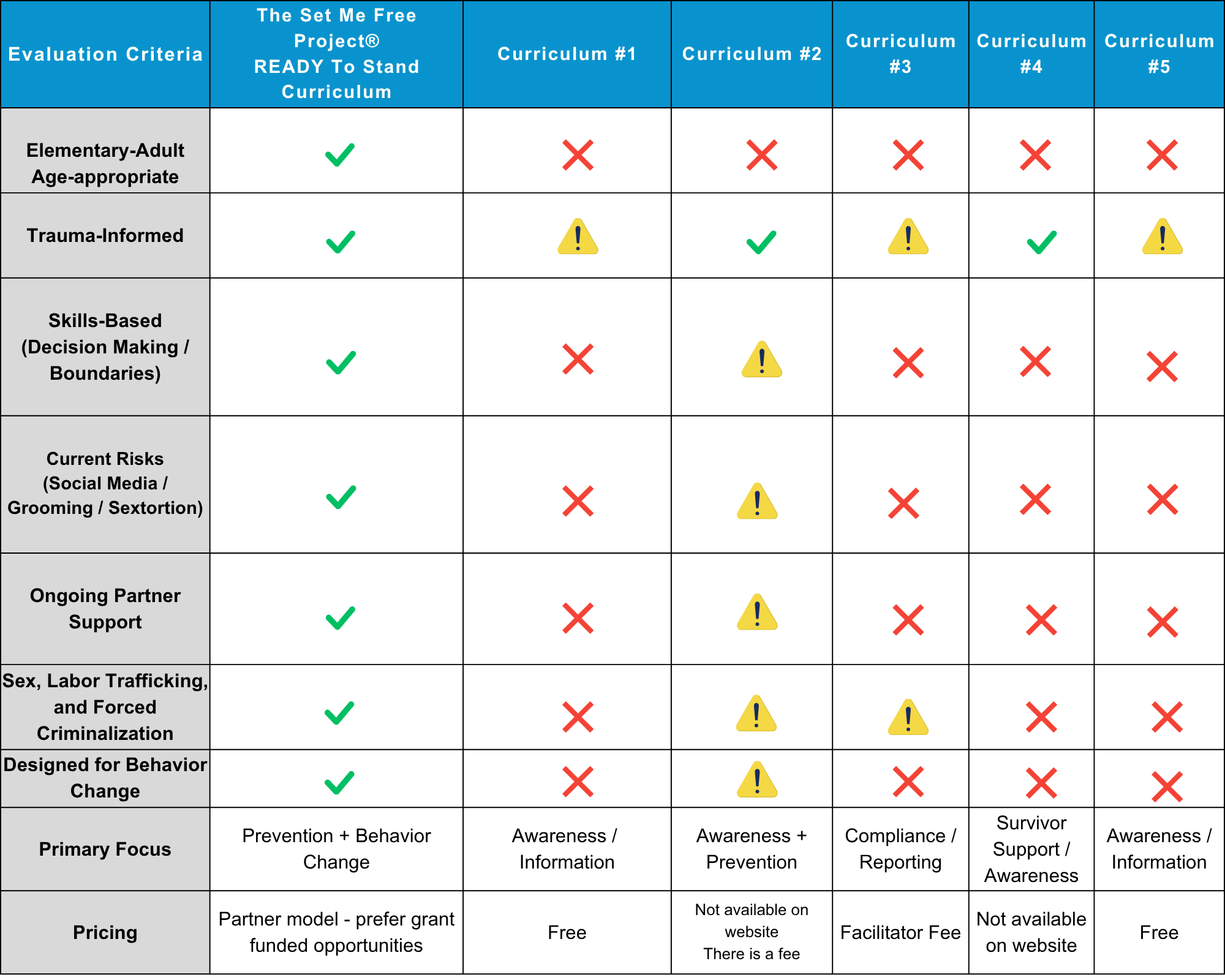 We are currently engaged in an external research review, including work connected to a CDC-funded initiative, to further evaluate the effectiveness of our curriculum.