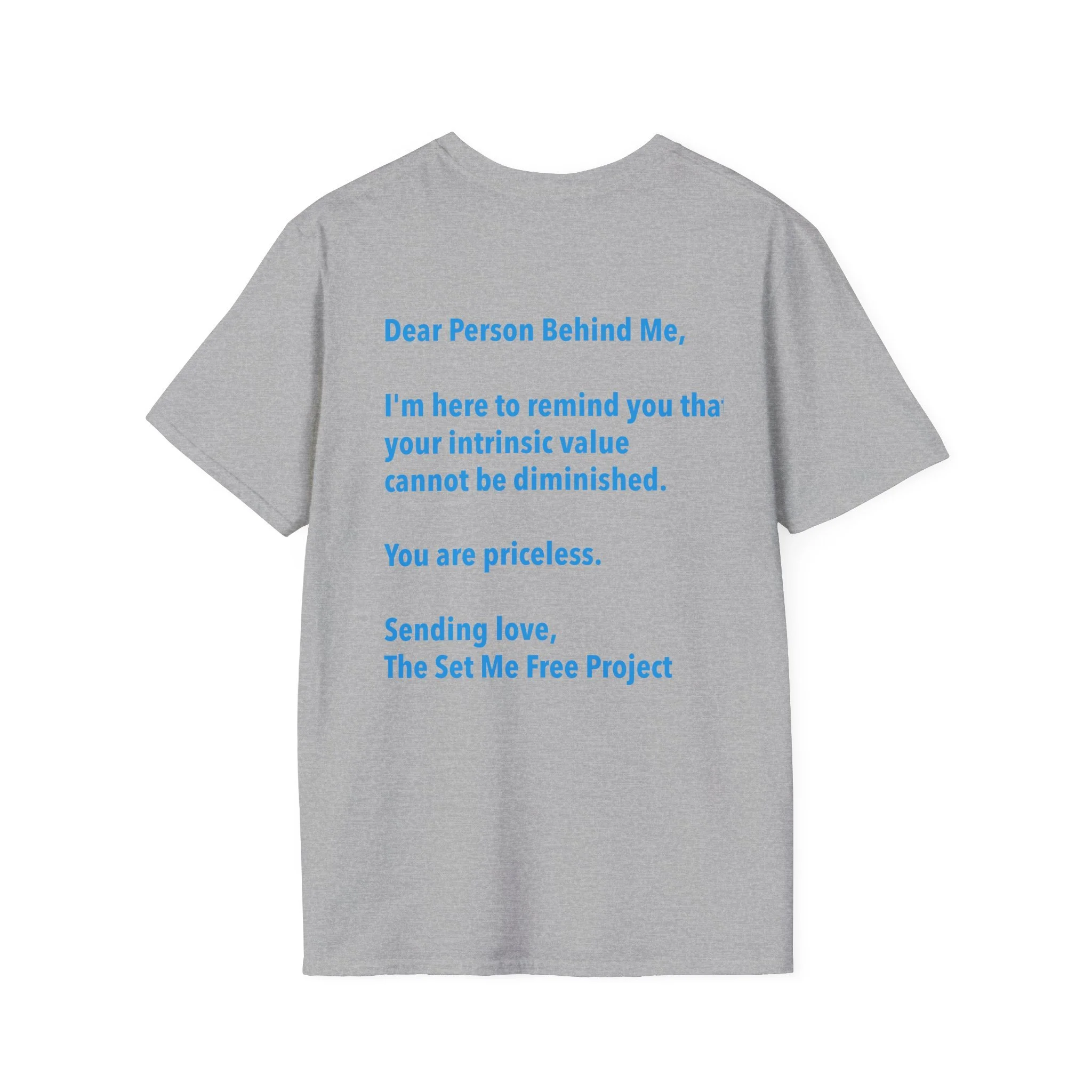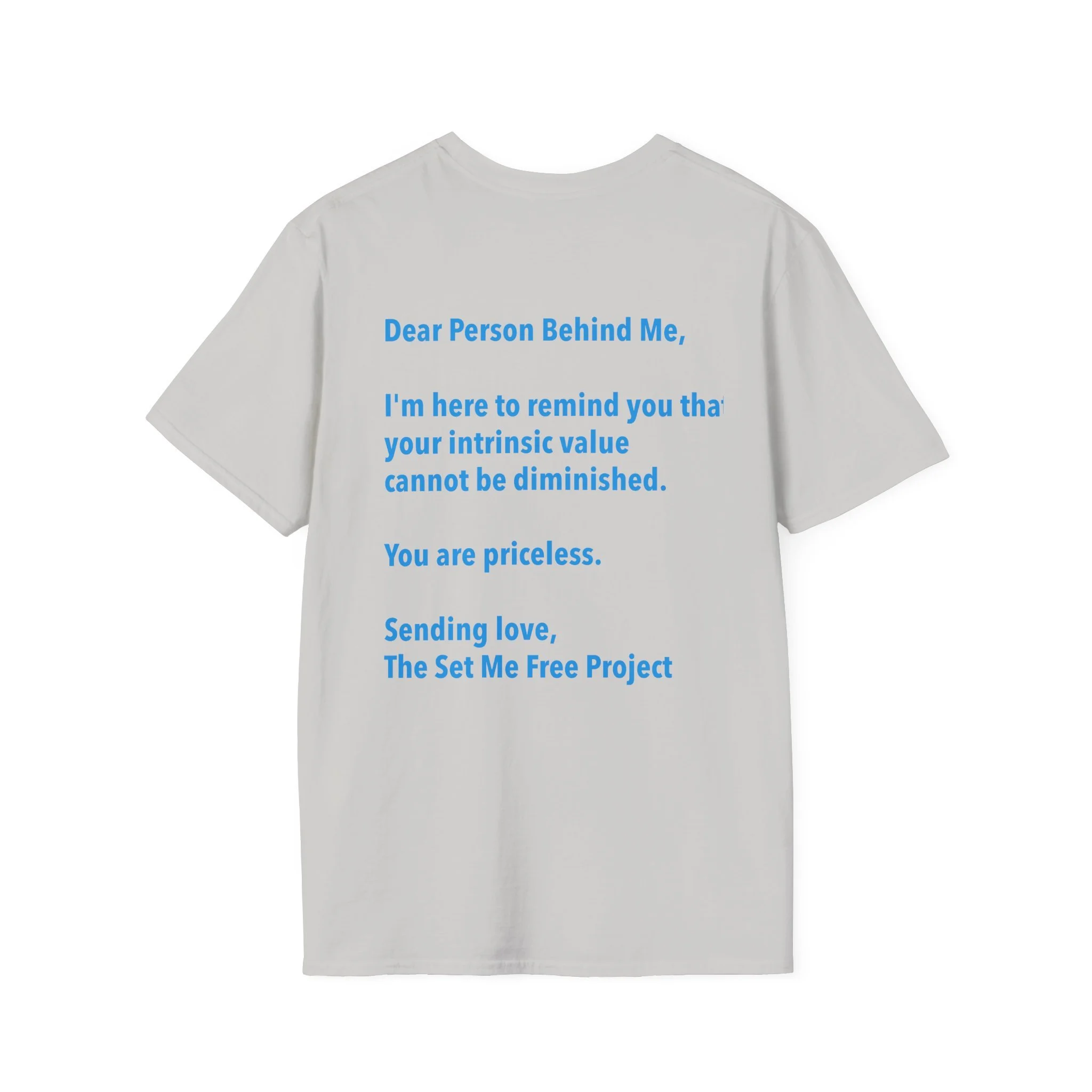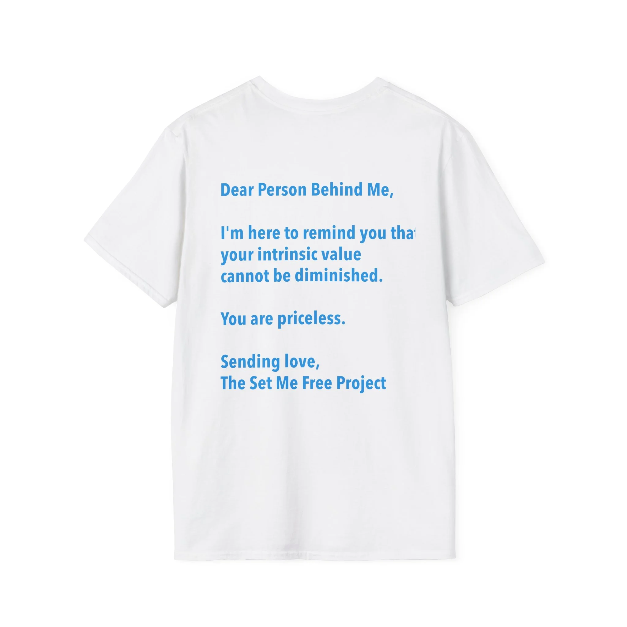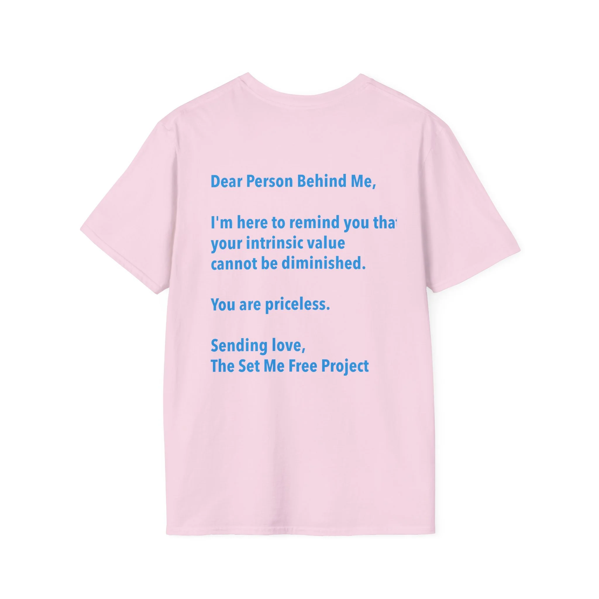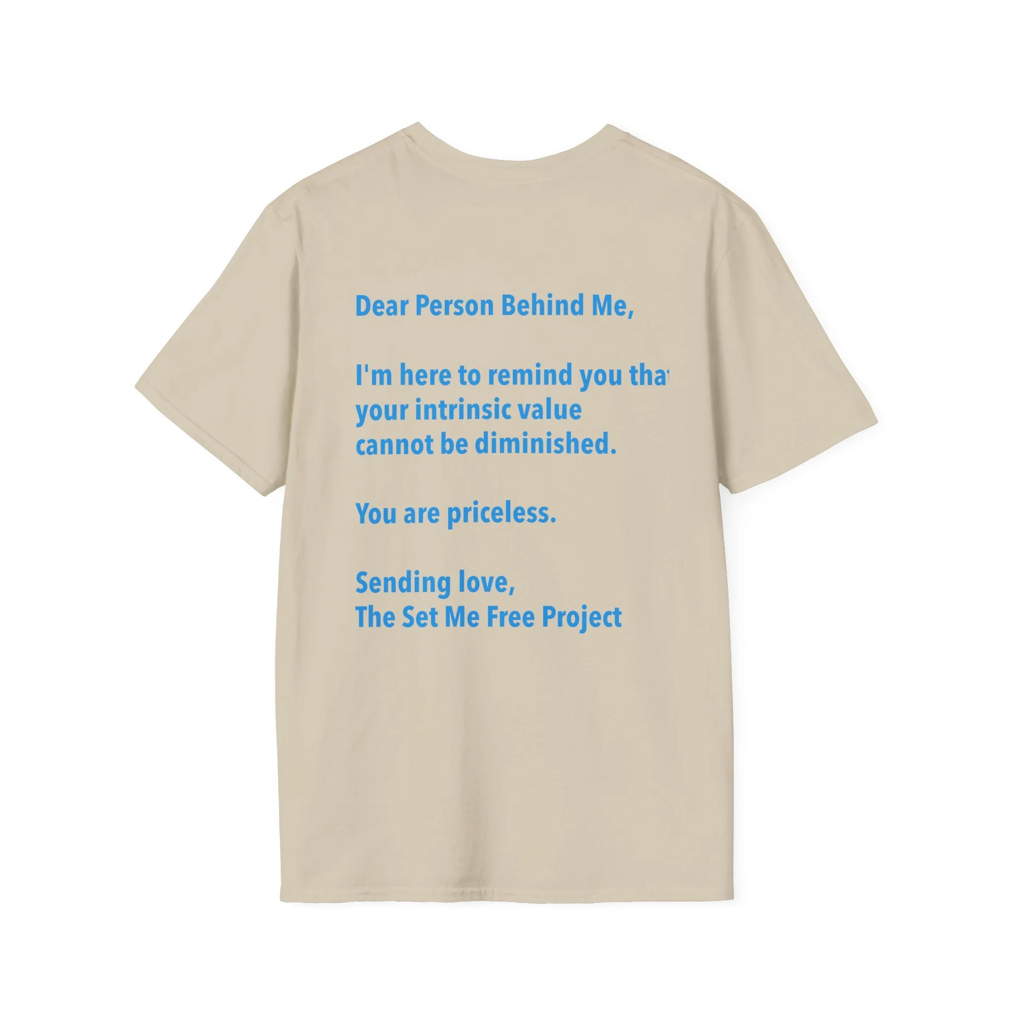 The Set Me Free Project message Unisex T-Shirt | Black Logo Dear Person Behind Me Blue Text